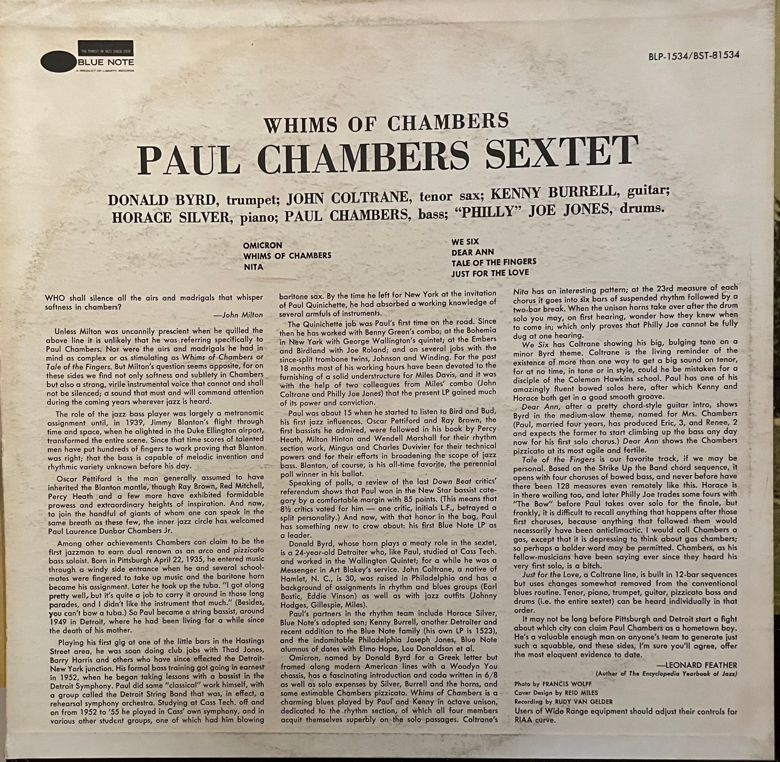 Paul Chambers Sextet Whims of Chambers Blue Note (US) 1973BST-81534 (LP)